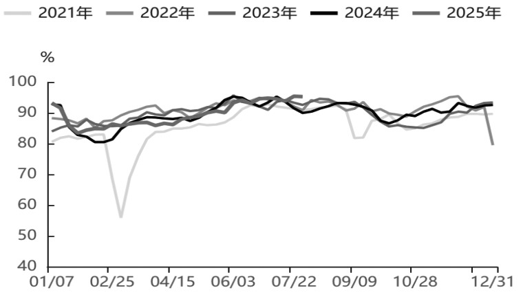 图为美国炼厂开工率走势