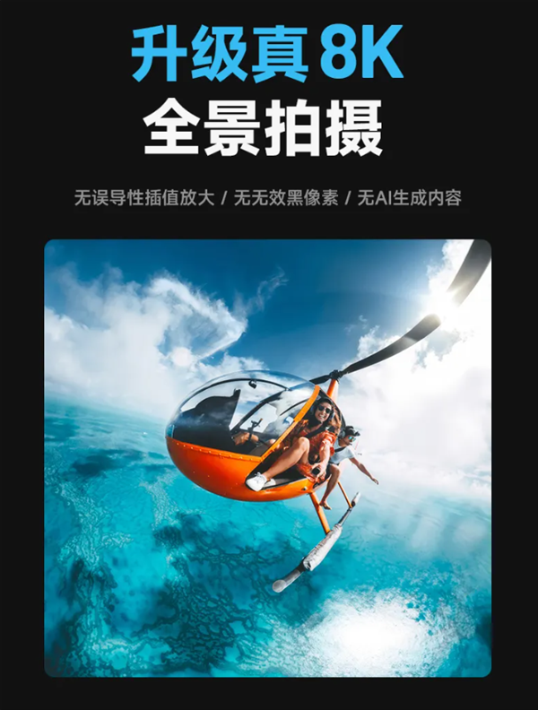 其搭载双镜头360°全景模式,可呈现3500万像素画质,输出真正的8K分辨率360°全景视频。