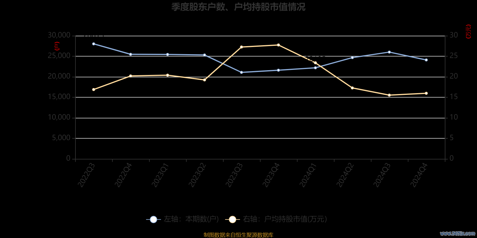年报显示,2024年末的公司十大流通股东中,新进股东为交银施罗德瑞思混合型证券投资基金(LOF)、长心长流私募证券投资基金、交银施罗德主题优选灵活配置混合型证券投资基金、哲云鸿泰私募证券投资基金,取代了三季度末的德汇尊享私募证券投资基金、天弘多元收益债券型证券投资基金、香港中央结算有限公司、德汇全球优选私募证券投资基金。在具体持股比例上,华泰尊享稳进98号单一资产管理计划持股有所上升,刘冬梅、中信证券股份有限公司持股有所下降。
