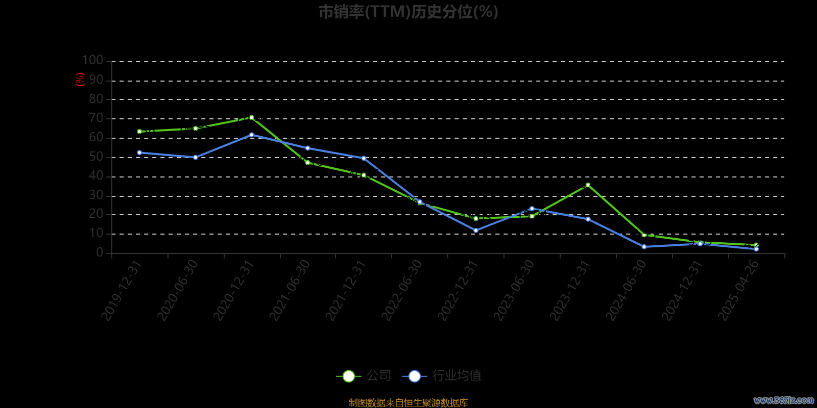 以4月25日收盘价计算,梦百合目前市盈率(TTM)约为-25.28倍,市净率(LF)约1.06倍,市销率(TTM)约0.45倍。