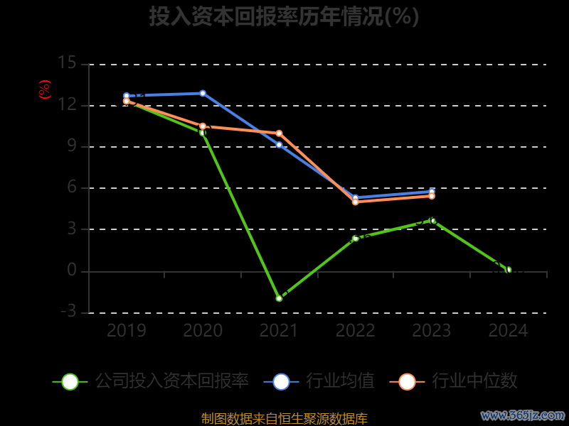 数据显示,2024年公司加权平均净资产收益率为-3.99%,较上年同期下降7.4个百分点。公司2024年投入资本回报率为0.08%,较上年同期下降3.58个百分点。