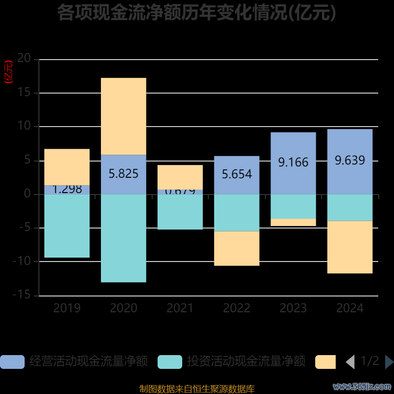 截至2024年,公司经营活动现金流净额为9.64亿元K线猎手,同比增长5.16%;筹资活动现金流净额-7.78亿元,同比减少6.7亿元;投资活动现金流净额-3.95亿元,上年同期为-3.63亿元。