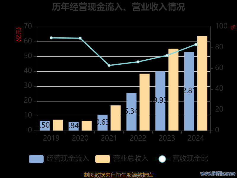 中证智能财讯威迈斯(688612)4月26日披露2024年年度报告。2024年,公司实现营业总收入63.72亿元,同比增长15.39%;归母净利润4亿元,同比下降20.34%;扣非净利润3.55亿元,同比下降25.62%;经营活动产生的现金流量净额为10.27亿元,同比增长41.24%;报告期内,威迈斯基本每股收益为0.95元,加权平均净资产收益率为11.75%。公司2024年度分配预案为:拟向全体股东每10股派现3.59元(含税)。